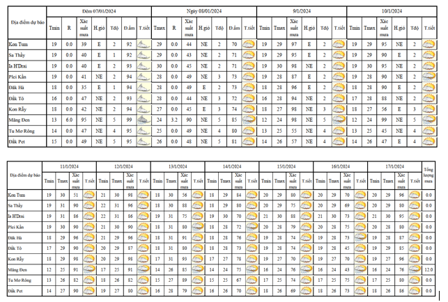 BẢN TIN DỰ BÁO, CẢNH BÁO THỜI TIẾT ĐIỂM ĐẾN 10 NGÀY KHU VỰC TỈNH KON TUM