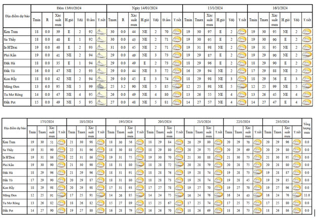 BẢN TIN DỰ BÁO THỜI TIẾT, THỦY VĂN TỈNH KON TUM Đêm 13 ngày 14 tháng 01 năm 2024
