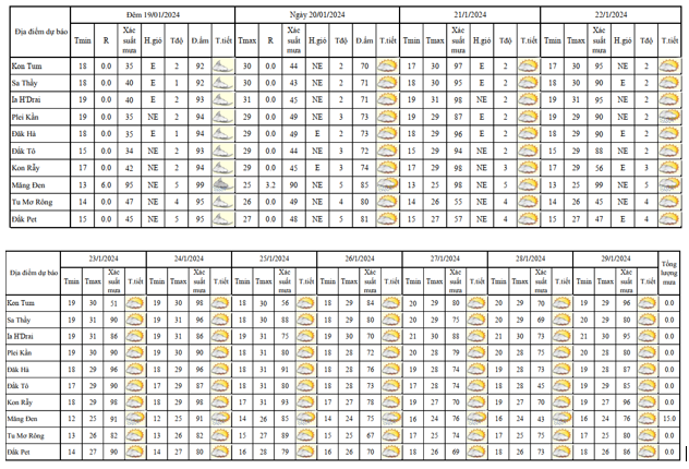 BẢN TIN DỰ BÁO THỜI TIẾT, THỦY VĂN TỈNH KON TUM Đêm 19 ngày 20 tháng 01 năm 2024