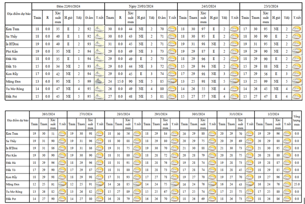 BẢN TIN DỰ BÁO THỜI TIẾT, THỦY VĂN TỈNH KON TUM Đêm 22 ngày 23 tháng 01 năm 2024