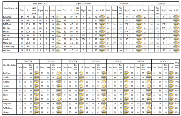 BẢN TIN DỰ BÁO THỜI TIẾT, THỦY VĂN TỈNH KON TUM Đêm 24 ngày 25 tháng 05 năm 2024