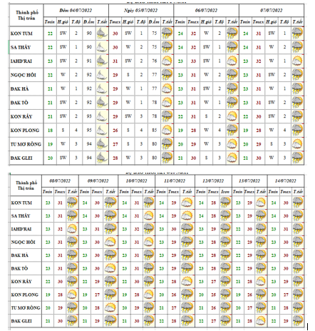 BẢN TIN DỰ BÁO THỜI TIẾT, THỦY VĂN TỈNH KON TUM Đêm 07 ngày 08 tháng 7 năm 2022
