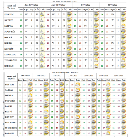BẢN TIN DỰ BÁO THỜI TIẾT, THỦY VĂN TỈNH KON TUM Đêm 07 ngày 08 tháng 7 năm 2022
