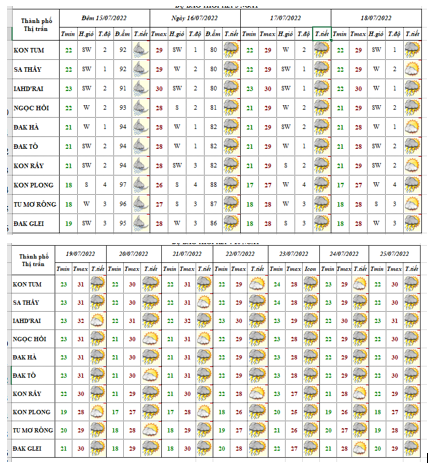 BẢN TIN DỰ BÁO THỜI TIẾT, THỦY VĂN TỈNH KON TUM Đêm 15 ngày 16 tháng 7 năm 2022