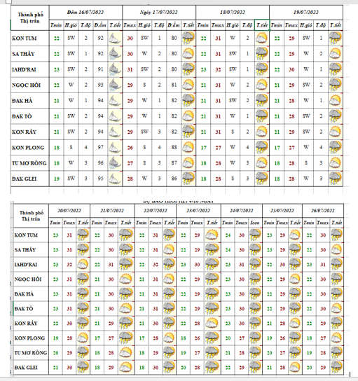 BẢN TIN DỰ BÁO THỜI TIẾT, THỦY VĂN TỈNH KON TUM Đêm 15 ngày 16 tháng 7 năm 2022