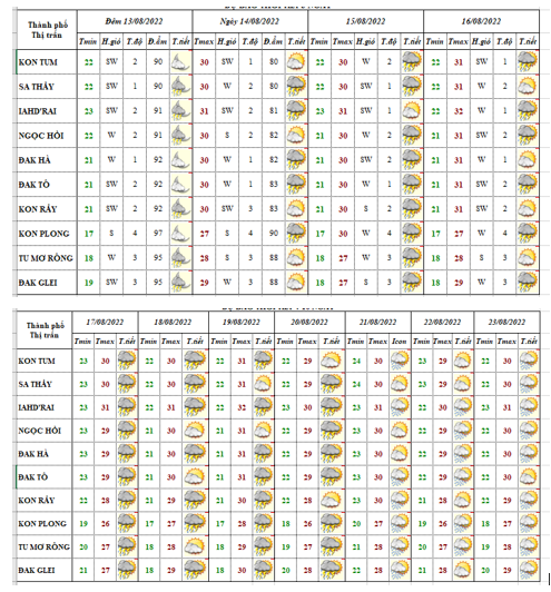 BẢN TIN DỰ BÁO THỜI TIẾT, THỦY VĂN TỈNH KON TUM Đêm 13 ngày 14 tháng 8 năm 2022