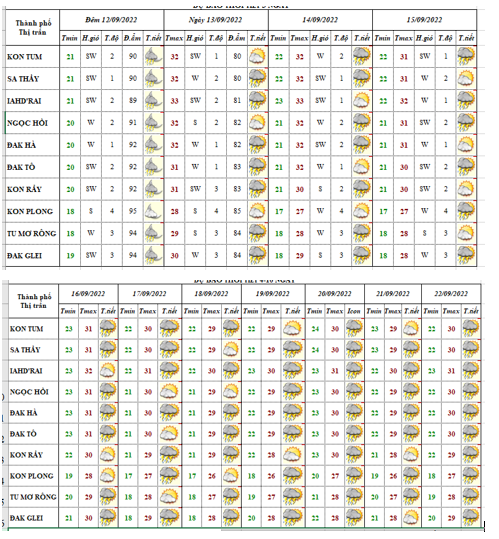 BẢN TIN DỰ BÁO THỜI TIẾT, THỦY VĂN TỈNH KON TUM Đêm 12 ngày 13 tháng 9 năm 2022