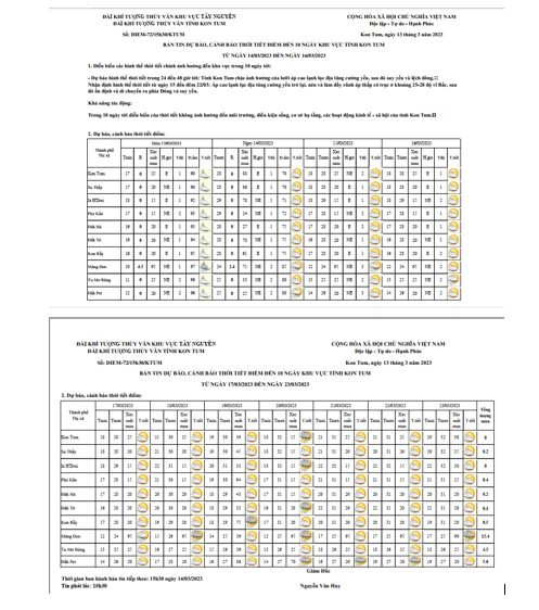 BẢN TIN DỰ BÁO THỜI TIẾT, THỦY VĂN TỈNH KON TUM Đêm 13 ngày 14 tháng 03 năm 2023