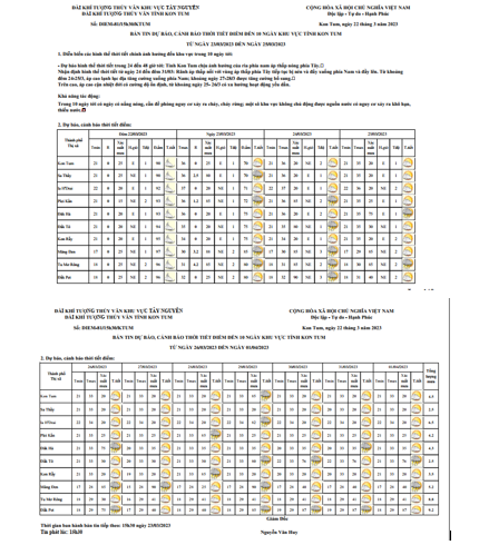 BẢN TIN DỰ BÁO THỜI TIẾT, THỦY VĂN TỈNH KON TUM Đêm 23 ngày 24 tháng 03 năm 2023