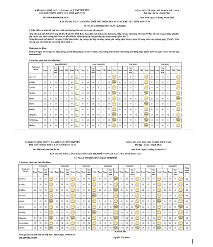 BẢN TIN DỰ BÁO THỜI TIẾT, THỦY VĂN TỈNH KON TUM Đêm 23 ngày 24 tháng 03 năm 2023