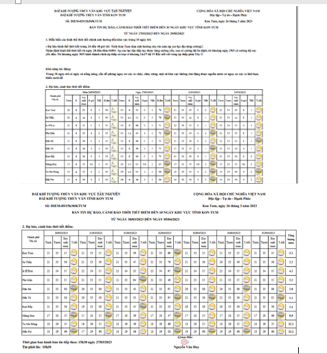 BẢN TIN DỰ BÁO THỜI TIẾT, THỦY VĂN TỈNH KON TUM Đêm 29 ngày 30 tháng 03 năm 2023
