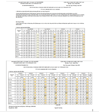 BẢN TIN DỰ BÁO THỜI TIẾT, THỦY VĂN TỈNH KON TUM Đêm 29 ngày 30 tháng 03 năm 2023