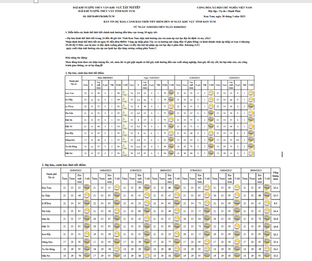 BẢN TIN DỰ BÁO THỜI TIẾT, THỦY VĂN TỈNH KON TUM Đêm 29 ngày 30 tháng 03 năm 2023