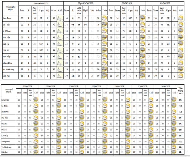 BẢN TIN DỰ BÁO THỜI TIẾT, THỦY VĂN TỈNH KON TUM Đêm 10 ngày 11 tháng 04 năm 2023