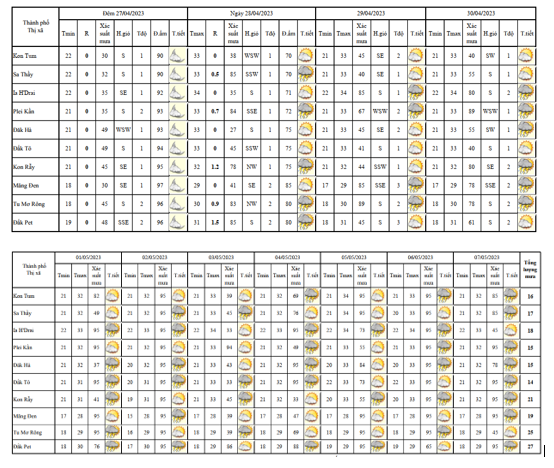 BẢN TIN DỰ BÁO THỜI TIẾT, THỦY VĂN TỈNH KON TUM Đêm 27 ngày 28 tháng 04 năm 2023