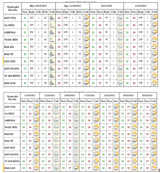 BẢN TIN DỰ BÁO THỜI TIẾT ĐIỂM 10 NGÀY CÁC HUYỆN VÀ TP. KON TUM
