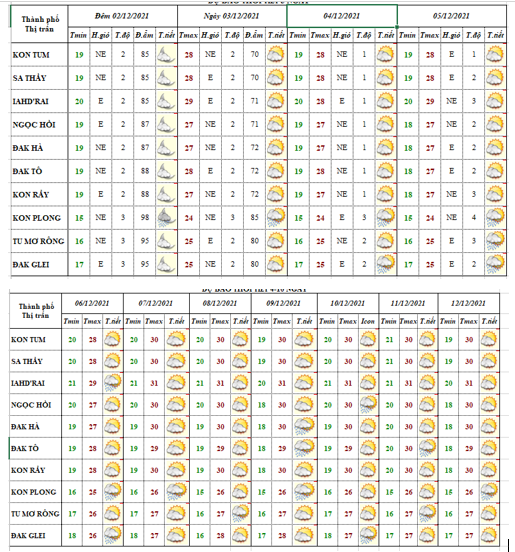 BẢN TIN DỰ BÁO THỜI TIẾT, THỦY VĂN TỈNH KON TUM Đêm 02 ngày 03 tháng 12 năm 2021
