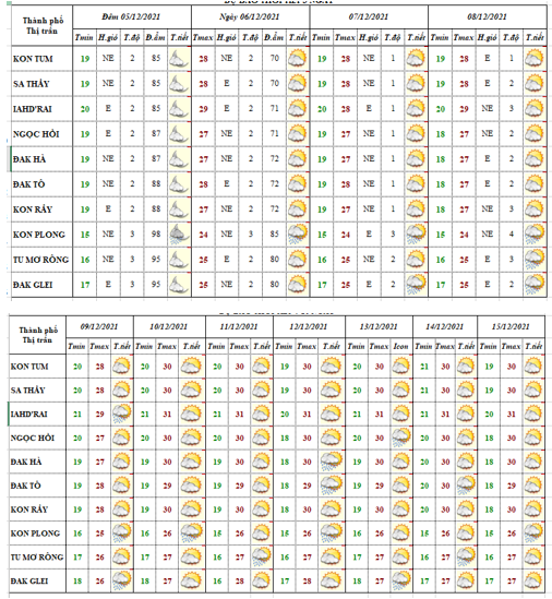 BẢN TIN DỰ BÁO THỜI TIẾT, THỦY VĂN TỈNH KON TUM Đêm 05 ngày 06 tháng 12 năm 2021