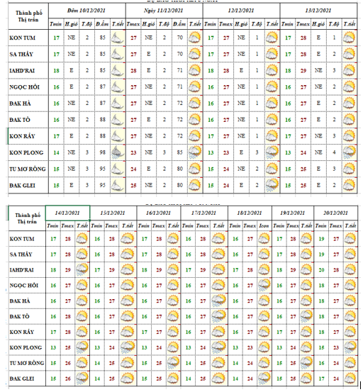 BẢN TIN DỰ BÁO THỜI TIẾT, THỦY VĂN TỈNH KON TUM Đêm 10 ngày 11 tháng 12 năm 2021
