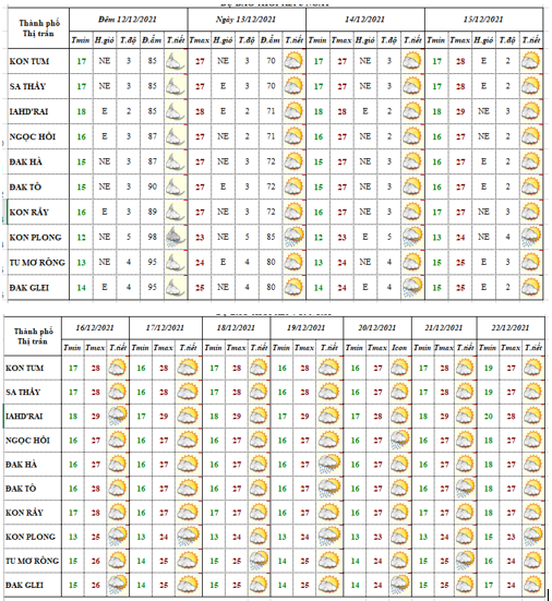 BẢN TIN DỰ BÁO THỜI TIẾT, THỦY VĂN TỈNH KON TUM Đêm 12 ngày 13 tháng 12 năm 2021