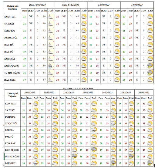 BẢN TIN DỰ BÁO THỜI TIẾT, THỦY VĂN TỈNH KON TUM Đêm 16 ngày 17 tháng 02 năm 2022
