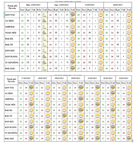 BẢN TIN DỰ BÁO THỜI TIẾT, THỦY VĂN TỈNH KON TUM Đêm 24 ngày 25 tháng 3 năm 2022
