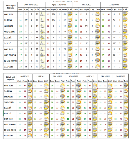 BẢN TIN DỰ BÁO THỜI TIẾT, THỦY VĂN TỈNH KON TUM Đêm 10 ngày 11 tháng 05 năm 2022