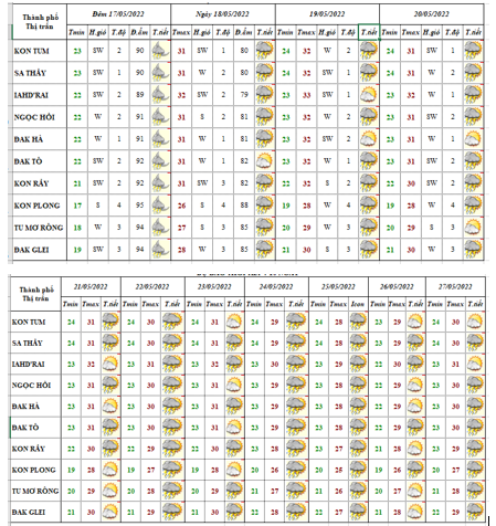 BẢN TIN DỰ BÁO THỜI TIẾT, THỦY VĂN TỈNH KON TUM Đêm 17 ngày 18 tháng 05 năm 2022