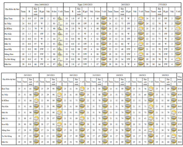 BẢN TIN DỰ BÁO THỜI TIẾT, THỦY VĂN TỈNH KON TUM Đêm 24 ngày 25 tháng 05 năm 2023