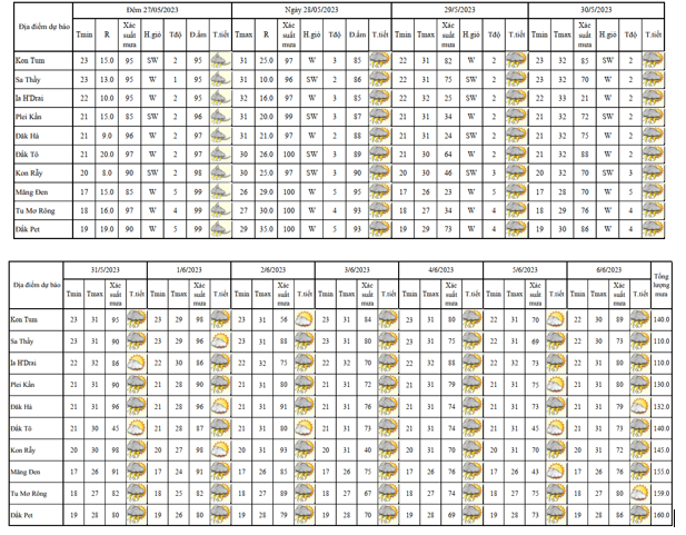 BẢN TIN DỰ BÁO THỜI TIẾT, THỦY VĂN TỈNH KON TUM Đêm 28 ngày 29 tháng 05 năm 2023