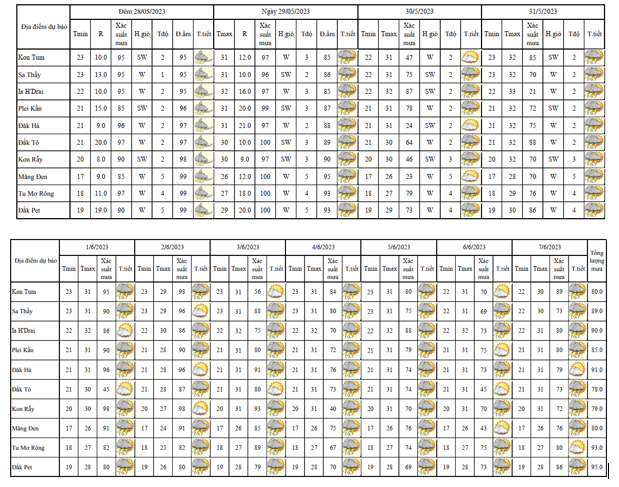 BẢN TIN DỰ BÁO THỜI TIẾT, THỦY VĂN TỈNH KON TUM Đêm 31.5 ngày 01 tháng 06 năm 2023
