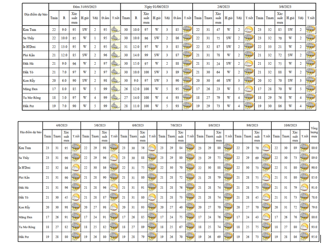BẢN TIN DỰ BÁO THỜI TIẾT, THỦY VĂN TỈNH KON TUM Đêm 31.5 ngày 01 tháng 06 năm 2023