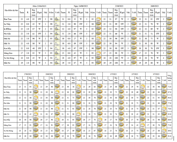 BẢN TIN DỰ BÁO THỜI TIẾT, THỦY VĂN TỈNH KON TUM Đêm 23 ngày 24 tháng 06 năm 2023