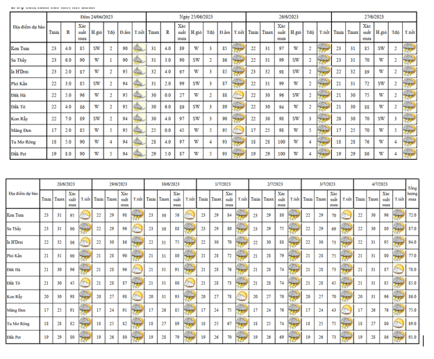 BẢN TIN DỰ BÁO THỜI TIẾT, THỦY VĂN TỈNH KON TUM Đêm 24 ngày 25 tháng 06 năm 2023