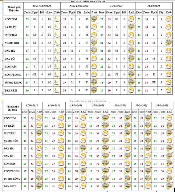 DỰ BÁO KHÍ HẬU TỪ NGÀY 11 ĐẾN NGÀY 20 THÁNG 4 NĂM 2021 CÁC KHU VỰC TRÊN PHẠM VI TỈNH KON TUM