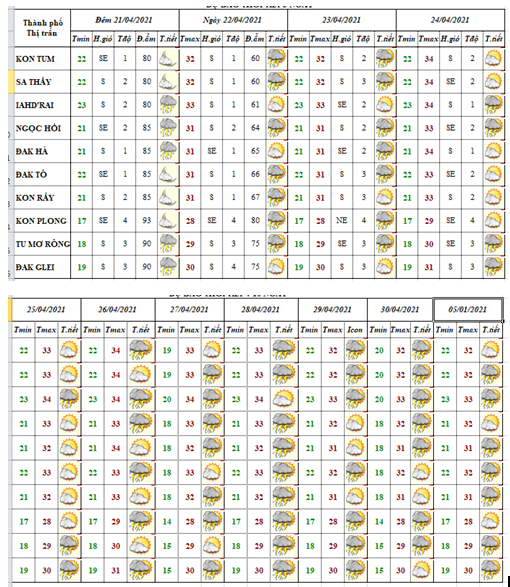DỰ BÁO KHÍ HẬU TỪ NGÀY 21 ĐẾN NGÀY 30 THÁNG 4 NĂM 2021 CÁC KHU VỰC TRÊN PHẠM VI TỈNH KON TUM