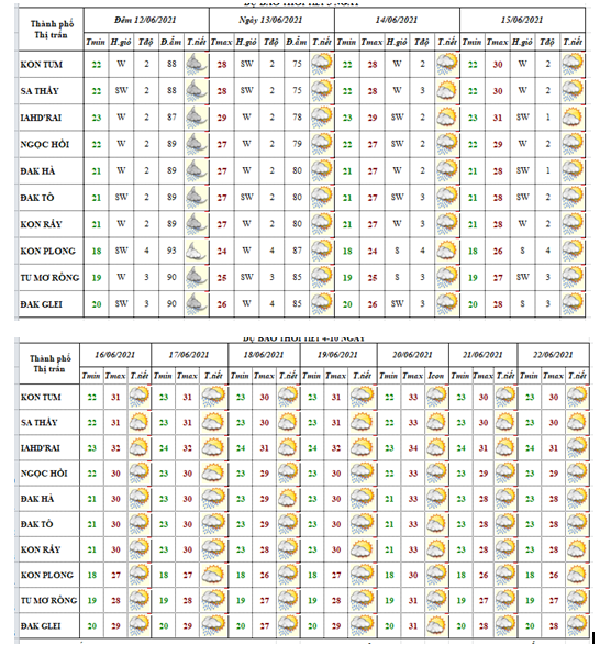 DỰ BÁO THỜI TIẾT TỈNH KON TUM ĐÊM 12 NGÀY 13 THÁNG 06 NĂM 2021