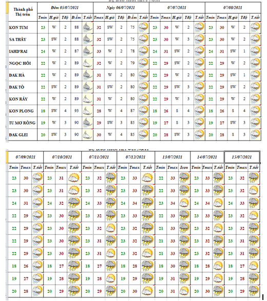 DỰ BÁO THỜI TIẾT TỈNH KON TUM ĐÊM 05 NGÀY 06 THÁNG 07 NĂM 2021
