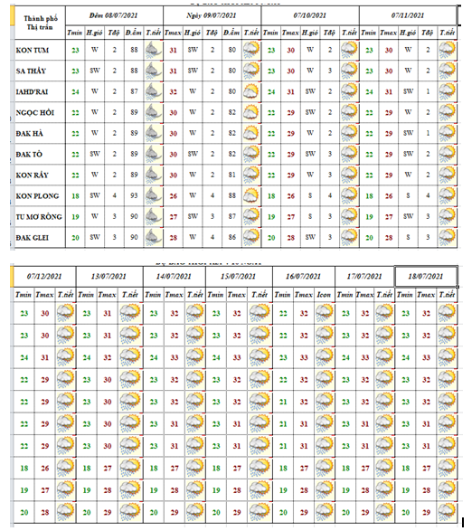 DỰ BÁO THỜI TIẾT TỈNH KON TUM ĐÊM 07 NGÀY 08 THÁNG 7 NĂM 2021