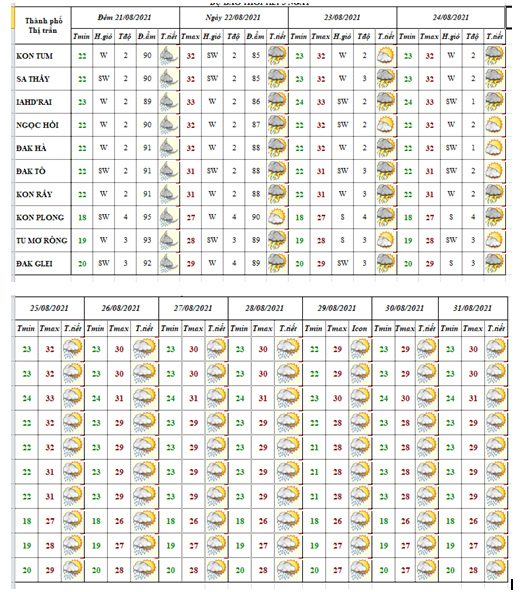 BẢN TIN NHẬN ĐỊNH XU THẾ THỜI TIẾT TỪ NGÀY 21 ĐẾN NGÀY 31 THÁNG 8 NĂM 2021 CÁC KHU VỰC TRÊN PHẠM VI TỈNH KON TUM
