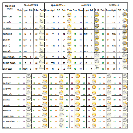 DỰ BÁO THỜI TIẾT TỈNH KON TUM ĐÊM 27 NGÀY 28 THÁNG 3 NĂM 2019