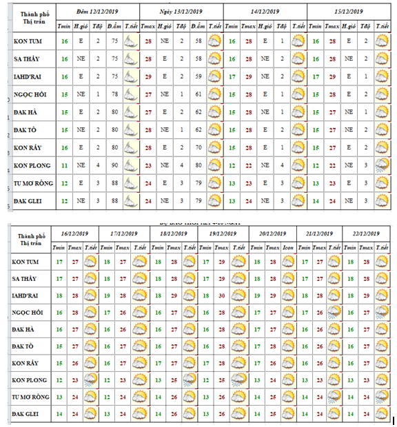 DỰ BÁO THỜI TIẾT TỈNH KON TUM ĐÊM 15 NGÀY 16 THÁNG 12 NĂM 2019