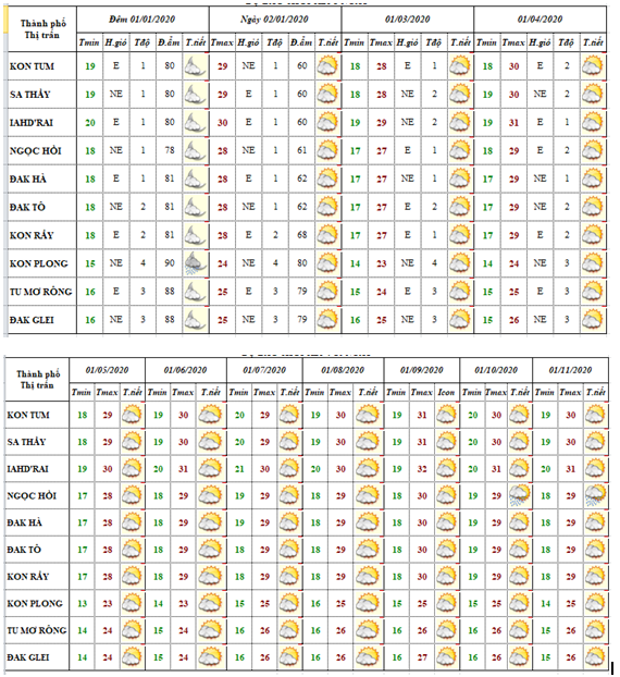 THÔNG BÁO KHÍ TƯỢNG THỦY VĂN THÁNG 01 NĂM 2020 CÁC KHU VỰC TRÊN PHẠM VI TỈNH KON TUM