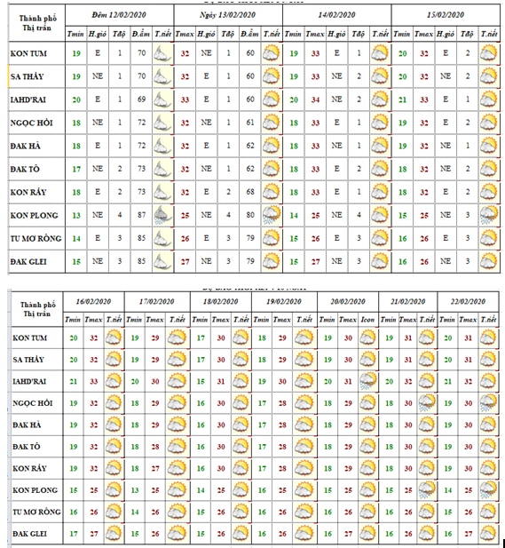 DỰ BÁO THỜI TIẾT TỈNH KON TUM ĐÊM 12 NGÀY 13 THÁNG 02 NĂM 2020