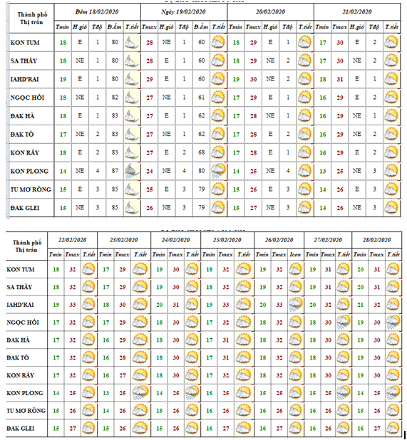 DỰ BÁO THỜI TIẾT TỈNH KON TUM ĐÊM 18 NGÀY 19 THÁNG 02 NĂM 2020