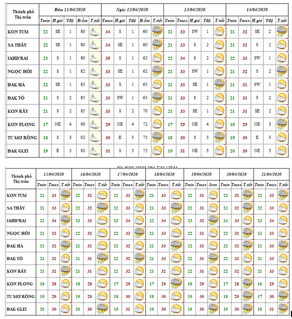 DỰ BÁO THỜI TIẾT TỈNH KON TUM ĐÊM 11 NGÀY 12 THÁNG 04 NĂM 2020