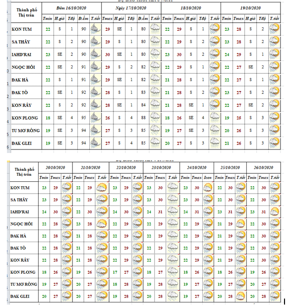 DỰ BÁO THỜI TIẾT TỈNH KON TUM ĐÊM 16 NGÀY 17 THÁNG 10 NĂM 2020