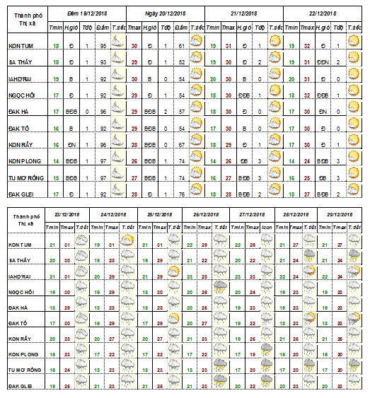 DỰ BÁO KHÍ TƯỢNG THUỶ VĂN TỪ NGÀY 21 ĐẾN NGÀY 31 THÁNG 12 NĂM 2018 CÁC KHU VỰC TRÊN PHẠM VI TỈNH KON TUM