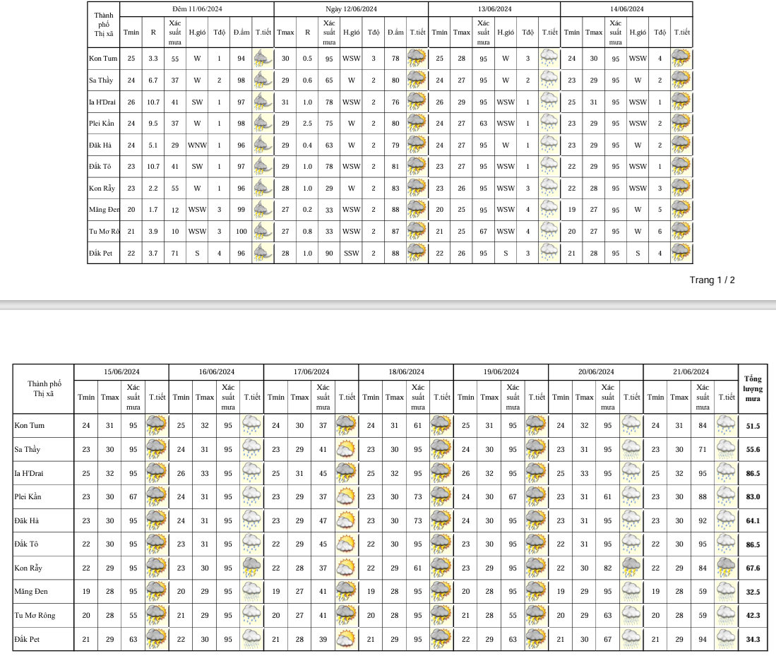 BẢN TIN DỰ BÁO, CẢNH BÁO THỜI TIẾT ĐIỂM ĐẾN 10 NGÀY KHU VỰC TỈNH KON TUM