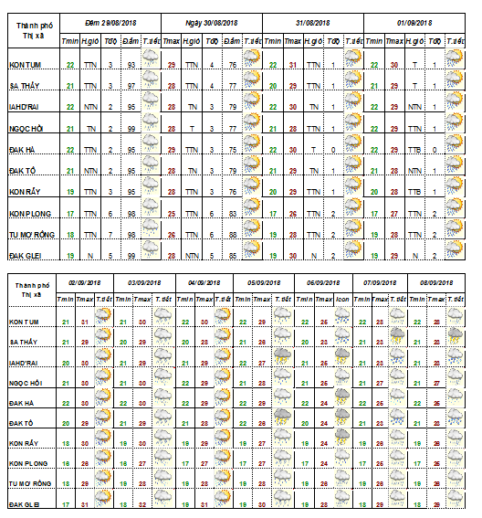 DỰ BÁO THỜI TIẾT TỈNH KON TUM ĐÊM 28 NGÀY 29 THÁNG 8 NĂM 2018
